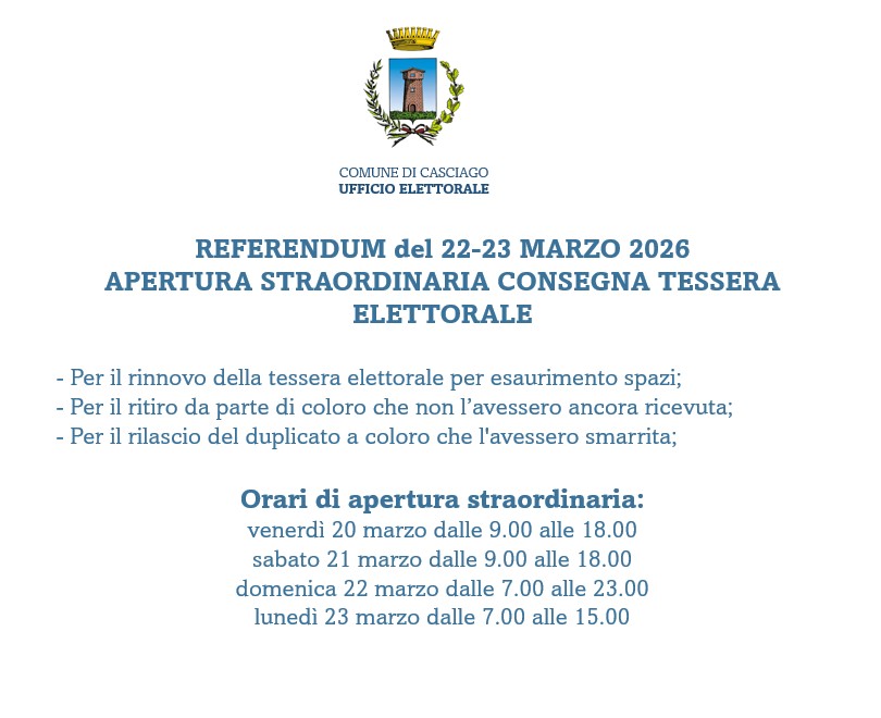 in vista del Referendum confermativo del 22-23 marzo 2026 l'ufficio elettorale osserverà alcune aperture straordinarie per consentire: