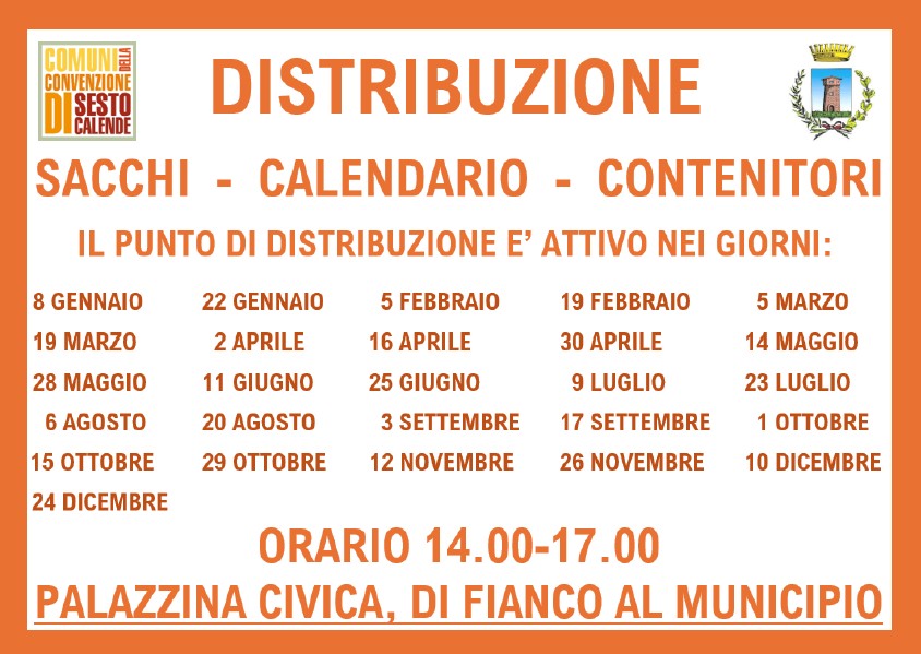 Nuovo orario di distribuzione per la fornitura dei sacchetti ed il ritiro dei contenitori